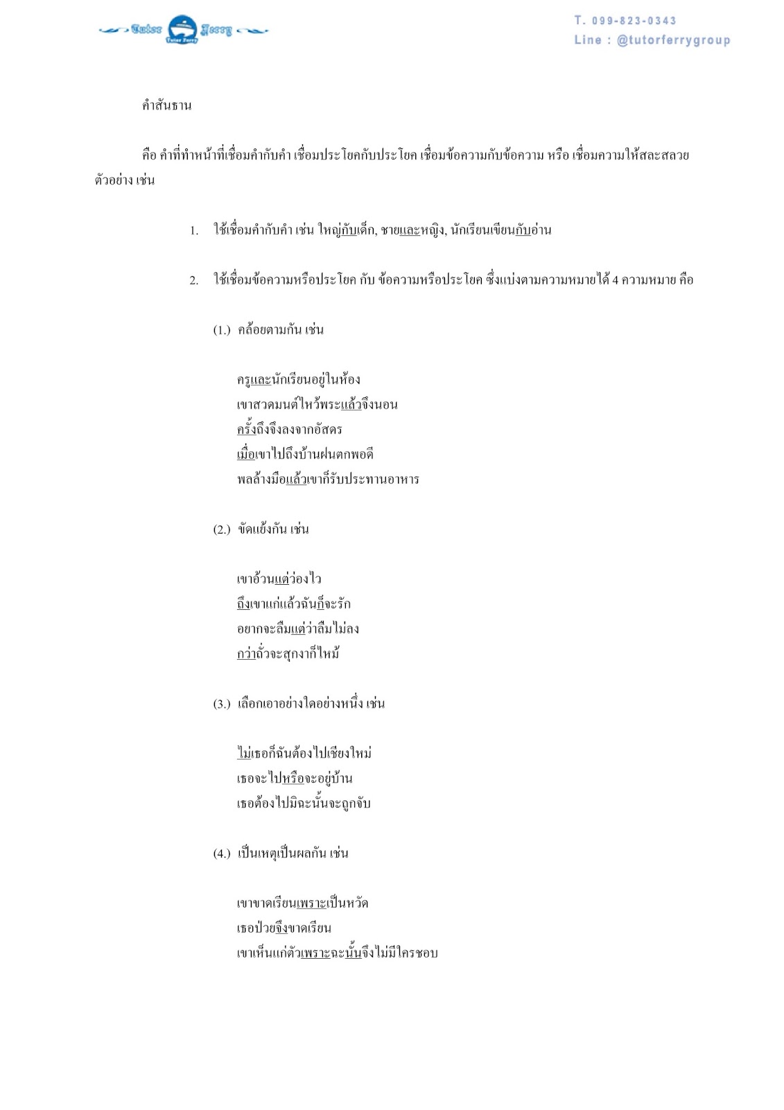 วิชาภาษาไทย ระดับประถม 6 เรื่องชนิดของคำ : Tutor Ferry สอนพิเศษที่บ้าน