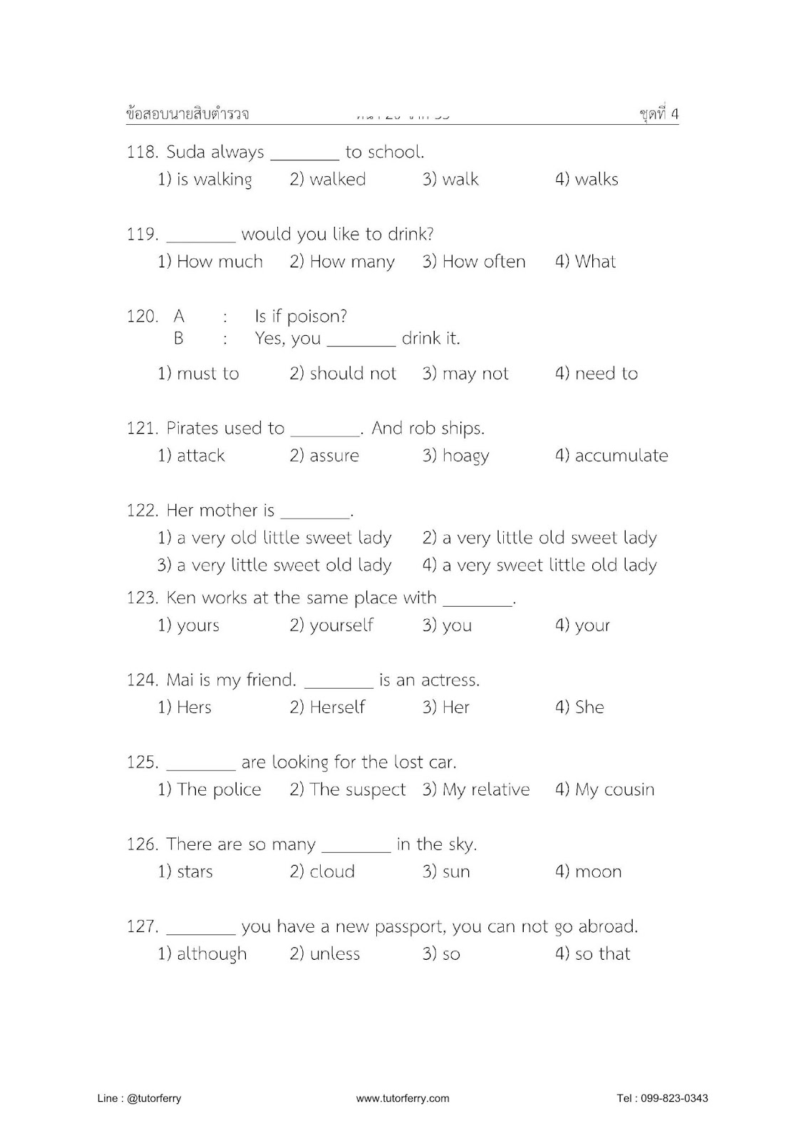 โจทย์ข้อสอบนายสิบตำรวจ (ม.6) พร้อมเฉลย